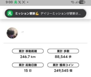 歩く系の報酬は多くて 0.5〜0.75円/日。